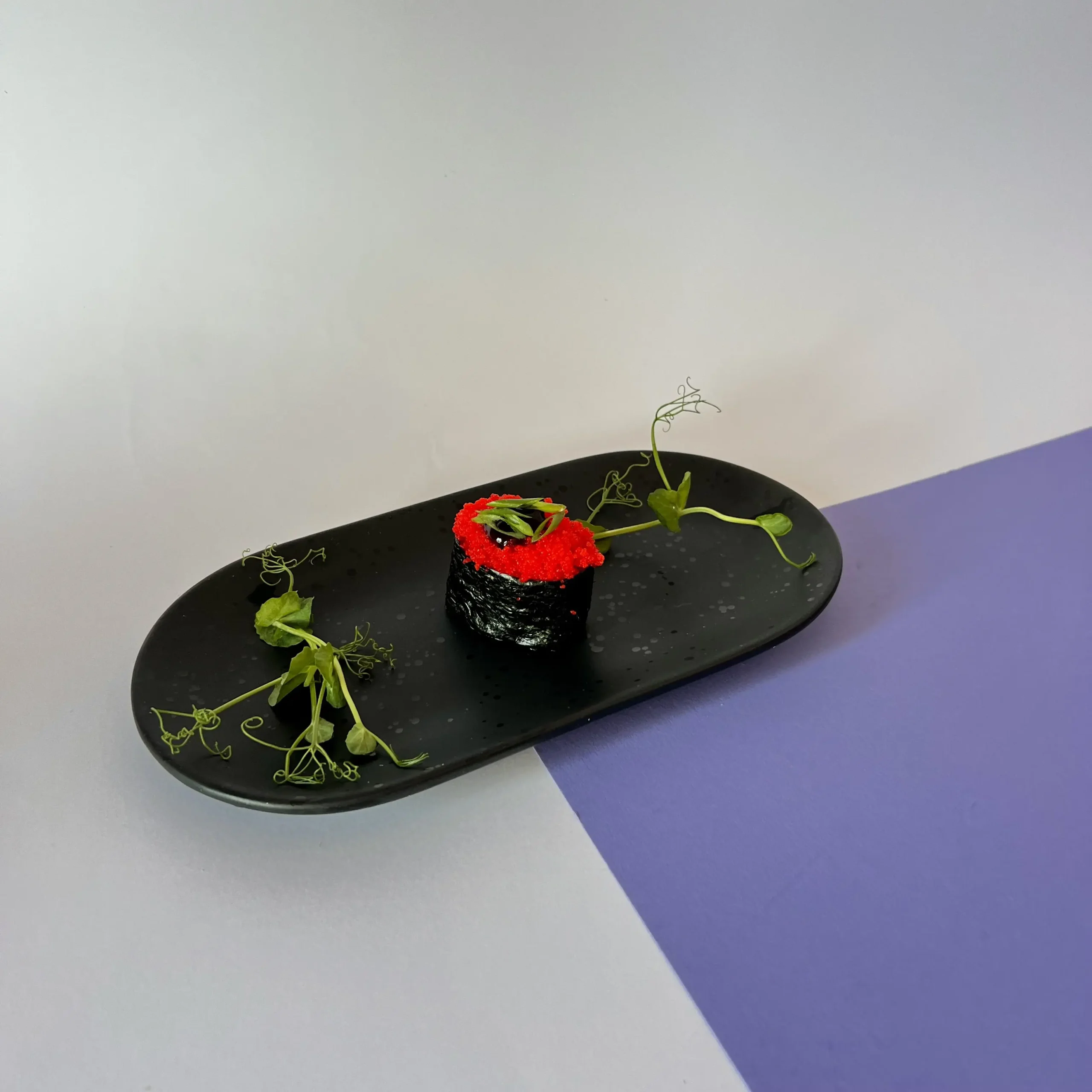 Рис, норі, масаго червона, соус унагі, цибуля зелена.