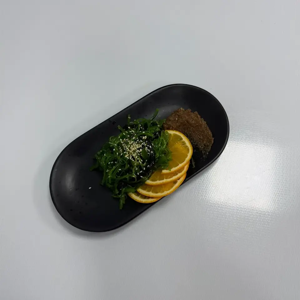 Хіяші вакаме, горіховий соус, кунжут мікс, апельсин.